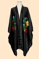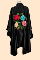 This mid-length robe with kimono style sleeves is the perfect piece to throw on when you want to make a statement while keeping it casual. Decorated with breathtaking hand embroidered flowers on the front and back. Design is one of a kind, inspired by the colorful flora and fauna of México’s famed Yucatán tropical rainforest. It's your new favorite robe in a traditional-meets-modern silhouette.