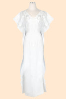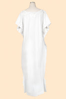 Talk about resort wear! Our Kaftan dress is inspired by Moroccan and Méxican styling. Full-length and flowing, this piece features open sleeves, a scalloped-edged V-neckline and beautiful embroidery across the front and back. It’s lightweight and super comfortable. Wear it day or night as an elegant summer maxi dress.