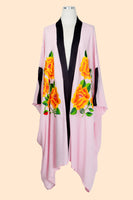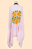 This eye-catching powder pink robe is the perfect piece to throw on when you want to make a statement while keeping it casual. Decorated with breathtaking hand embroidered flowers on the front and back. Design is one of a kind, inspired by the colorful flora and fauna of México’s famed Yucatán tropical rainforest. It's your new favorite wrap in a traditional-meets-modern silhouette.